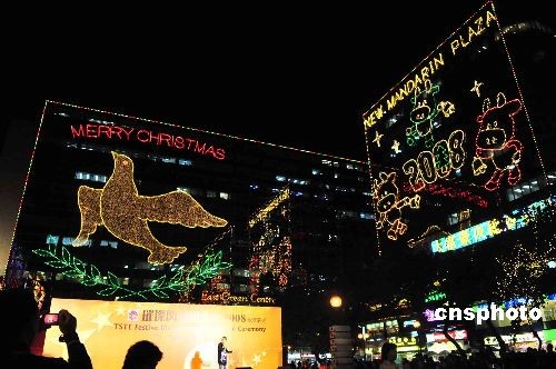 十一月十二日,香港尖東舉行圣誕燈飾亮燈儀式。著名歌星古巨基主持亮燈儀式。各大商場冀在金融危機(jī)中力保市民消費(fèi)意欲。中新社發(fā) 譚達(dá)明 攝