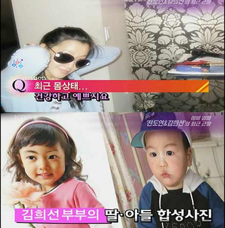 預(yù)產(chǎn)期在09年1月的金喜善近期被頻頻曝光,不光有好友在博客里面公開了她的最新照片,婆婆更對媒體表示將有個小孫女。日前,韓國網(wǎng)絡(luò)上還出現(xiàn)了號稱“金喜善未來寶寶模樣”的相關(guān)合成照。