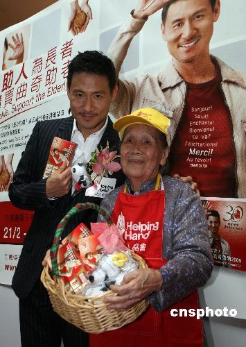 二月二十一日,“愛心曲奇大使”張學友在香港出席伸手助人協(xié)會舉行的義賣活動,為協(xié)會旗下的長者院舍籌集善款。中新社發(fā) 武仲林 攝