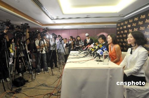 二月二十四日,第三屆亞洲電影大獎記者會在香港舉行。評審主席楊紫瓊、電視廣播有限公司電視廣播業(yè)務總經(jīng)理陳志云、亞洲電影大獎及香港亞洲電影投資會執(zhí)行總監(jiān)何韻明等出席。中新社發(fā) 鄧慶樂 攝