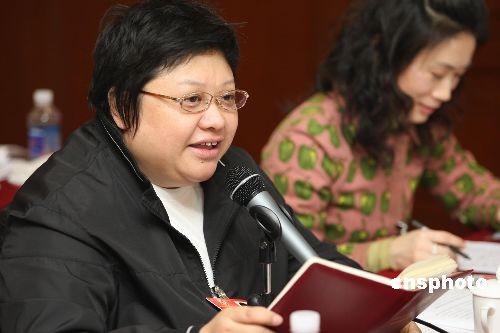 3月4日,全國政協(xié)十一屆二次會議進(jìn)行分組討論。韓紅在青聯(lián)界小組討論上發(fā)言。中新社發(fā) 傅丹丹 攝