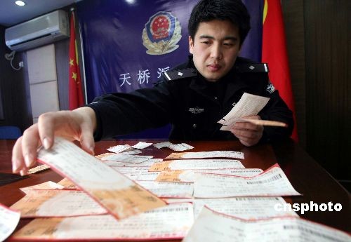 近日,北京宣武警方經(jīng)過(guò)前期取證后對(duì)天橋劇場(chǎng)周邊的倒票團(tuán)伙實(shí)施抓捕,5分鐘抓捕11名嫌疑人。目前,嫌疑人全部被宣武警方治安拘留。中新社發(fā) 湯亮 攝