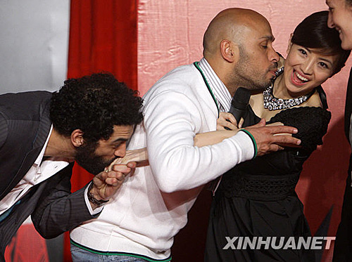 4月9日,法國電影《孤獨二兄弟》的導(dǎo)演兼主演、法國家喻戶曉的笑星組合朗茲·貝迪亞(左)和埃里克·朱多爾(中)在接受采訪時逗樂。當日,由中國國家廣播電影電視總局、法國駐華大使館等單位共同主辦的“2009中法文化交流之春暨第六屆法國電影展映活動”在北京開幕,該活動將向中國觀眾展現(xiàn)當代法國藝術(shù)舞臺的活力和創(chuàng)造力,為中法兩國藝術(shù)家提供交流的機會。邢廣利 攝