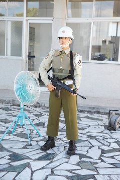 中新網(wǎng)7月1日電 據(jù)臺(tái)灣《聯(lián)合報(bào)》報(bào)道,“憲兵”站崗吹電風(fēng)扇?這幕顛覆傳統(tǒng)“憲兵”站崗的畫(huà)面出現(xiàn)在花蓮空軍基地,一名全副武裝的女大兵,身穿重達(dá)1.5公斤的防彈背心,制服密不透風(fēng),部隊(duì)長(zhǎng)官體諒她,炎炎夏日擔(dān)心她中暑,貼心提供風(fēng)扇為她消暑。