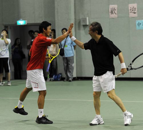 中新網(wǎng)7月6日電 據(jù)“中央社”報道,5日晚臺灣“中央研究院”網(wǎng)球場星光燦爛。剛打進(jìn)溫布爾登男單8強(qiáng)的盧彥勛與前“中研院長”李遠(yuǎn)哲搭配,迎戰(zhàn)以艾滋病雞尾酒療法聞名的何大一與廣州亞運網(wǎng)球總教練連玉輝。