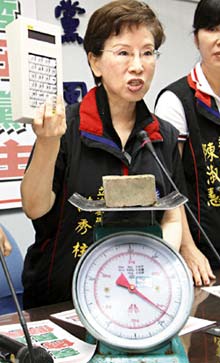 中新網7月10日電 據臺灣《聯(lián)合報》報道,臺“立法院”8日爆發(fā)流血沖突,民進黨政策會執(zhí)行長柯建銘9日表示,“立委”黃偉哲丟定時器是“一大敗筆”。國民黨女“立委”昨天開記者會,秤量定時器,一點一公斤,和從“立法院”花園找來的半塊紅磚一樣重。