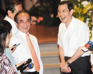 中新網(wǎng)7月15日電 據(jù)臺灣《聯(lián)合報》報道,臺“立法院”臨時會結(jié)束,“立法院長”王金平14日晚宴請馬英九,替他補過60歲生日。席間馬英九與“行政院長”吳敦義贊揚王金平領(lǐng)導“立法院”成功,通過各項重大法案,“在關(guān)鍵時刻發(fā)揮了關(guān)鍵影響力!瘪R、王、吳三人還在臺上高唱“你是我的兄弟”,氣氛熱絡(luò)。