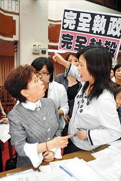 前年10月,管碧玲不滿洪秀柱在“立法院”會上,搶走其助理帶來的抗議標語,并誤傷了助理眼睛,管碧玲當場情緒失控,上前掌摑洪秀柱,洪秀柱也不甘示弱回捏管碧玲臉頰。