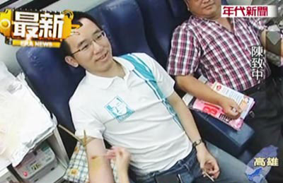 據(jù)報(bào)道,陳致中在8日利用跑選舉行程的空檔,前往捐血中心捐血250CC,對(duì)于主持人的說(shuō)法顯得“有點(diǎn)尷尬”。