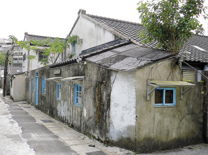 一位旁邊的住戶告訴記者,眼前的四四南村,就是由兵工廠的員工及眷戶們居住的區(qū)域,原地曾是日軍陸軍庫房。整體建筑為“魚骨狀”架構(gòu),依然保持著當年的樣貌,窄窄的過道,低矮的屋頂,灰黑色的磚墻,狹小的居住面積。據(jù)統(tǒng)計,四四南村原計劃在1999年隨眷村改建政策拆除,但在1991年3月,被臺北市政府列為“歷史建筑物”,并在1993年10月,改為信義區(qū)公民會館,將眷村內(nèi)的生活用博物館的方式展出,并提供市民租借為展覽活動場地。原建物并未變動,連圍墻也都還保留著。