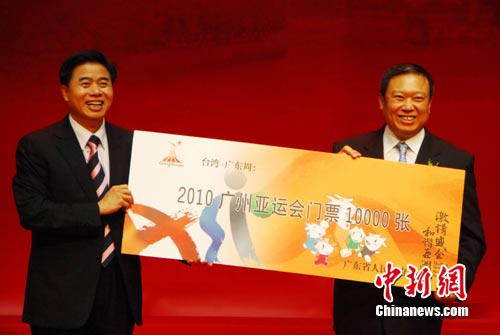 中新社臺(tái)北8月17日電 (記者 張傳熙)“臺(tái)灣•廣東周”開幕式17日上午在臺(tái)北國(guó)際會(huì)議中心舉行。臺(tái)灣政要及工商界知名人士,包括吳伯雄、江丙坤、王志綱、郭山輝等出席開幕儀式。廣東省省長(zhǎng)黃華華在儀式上向臺(tái)灣有關(guān)方面贈(zèng)送亞運(yùn)會(huì)門票。