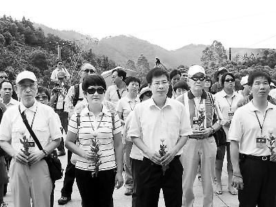 71年后的2010年8月17日,參加“情系八桂——兩岸文化聯(lián)誼行”活動(dòng)的兩岸文化、教育界人士,手持黃菊花走近昆侖關(guān)戰(zhàn)役舊址。一向健談活躍的臺(tái)灣沈春池文教基金會(huì)秘書(shū)長(zhǎng)陳春霖先生此時(shí)反復(fù)自語(yǔ)的只有4個(gè)字:肅然起敬。通往陣亡將士墓的臺(tái)階高達(dá)331階,但臺(tái)灣交流團(tuán)中六七十歲的老先生們都步行到墓前,70多歲的臺(tái)前“陸委會(huì)”主委張京育先生說(shuō):“家父也是抗戰(zhàn)烽火中的一名中國(guó)軍人,我這是第二次到廣西,第一次就是抗戰(zhàn)時(shí)隨父母來(lái)的。我們的腳下是前輩先烈為國(guó)捐軀的土地,他們永遠(yuǎn)是我們中華民族之光。”
