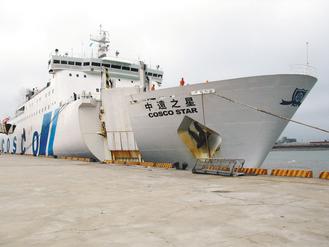 中國遠(yuǎn)洋所屬“中遠(yuǎn)之星”是第一艘獲準(zhǔn)兩岸直航定期航線的客貨兩用輪,去年9月6日首航,航線為“臺(tái)中─廈門”及“基隆─廈門”,每周往返各一航次。除載運(yùn)大陸游客赴臺(tái)旅游,貨運(yùn)則鎖定臺(tái)灣友達(dá)等面板大廠,將面板半成品運(yùn)回臺(tái)灣加工。