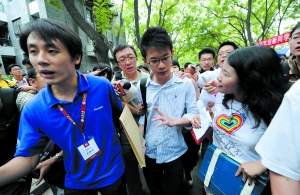 昨日北大五四路上迎來了一群新鮮的面孔,而李戡絕對(duì)是其中的“超級(jí)明星”。早上8點(diǎn),兩岸三地的記者就在經(jīng)濟(jì)學(xué)院報(bào)名處“蹲點(diǎn)”。10點(diǎn)左右,身材清瘦、穿著白底黑條紋襯衫的李戡終于現(xiàn)身,面對(duì)媒體的圍追堵截,他應(yīng)對(duì)大方得體,承認(rèn)上北大是受父親的影響。前來送行的母親則希望媒體的關(guān)注只限于近幾日,開學(xué)后能讓孩子平靜安心地學(xué)習(xí)。