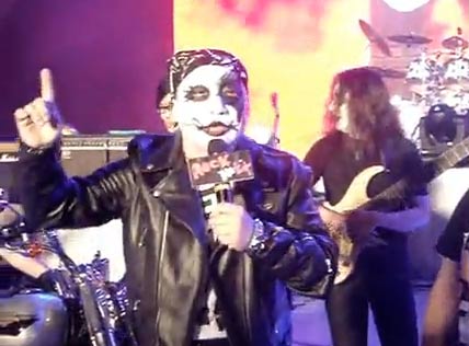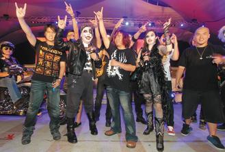 昨晚活動(dòng)記者會(huì),由春吶創(chuàng)辦人Wade所組、來自蘇格蘭的Aurora樂團(tuán)開場(chǎng),接著是由團(tuán)員全化上嚇人尸妝的“搖滾臺(tái)中金屬魂”咆哮震撼登場(chǎng),演唱由在地金屬10團(tuán)共同創(chuàng)作的主題曲“搖滾臺(tái)中”。隆隆重金屬樂聲中,胡志強(qiáng)化身搖滾客、跨坐百萬哈雷摩托車現(xiàn)身。