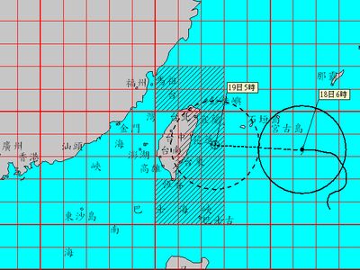 “氣象局”預(yù)測,臺風(fēng)暴風(fēng)圈19日凌晨就會接觸臺灣東部陸地,東北部可能有超大豪雨。