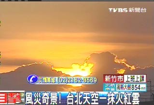 中新網(wǎng)9月20日電 早起的民眾是否注意到臺北今天的日出特別迷人嗎?據(jù)臺灣TVBS報(bào)道,臺風(fēng)“凡亞比”逐漸遠(yuǎn)離臺灣,臺北一早晴空萬里,當(dāng)太陽剛升起的時候,天空出現(xiàn)一大片的火紅云,早起出門運(yùn)動的民眾,或是出門上課的學(xué)生,看到橘紅色的火紅云,都相當(dāng)震撼,隨著天色逐漸變亮,火紅云也慢慢消失。