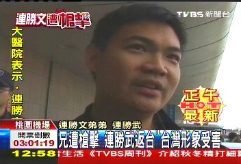 中新網(wǎng)11月27日電 據(jù)臺(tái)灣TVBS報(bào)道,在臺(tái)灣“五都”選前最后一天,國民黨榮譽(yù)主席連戰(zhàn)之子連勝文遭到槍擊。27日上午11點(diǎn)55分,連勝文的弟弟連勝武從香港飛抵臺(tái)灣。他說,知道這樣的事情,他很替哥哥心痛。
