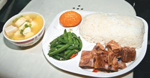 臺北監(jiān)獄提供陳水扁的第一個晚餐,包括藥燉排骨、炒青菜(四季豆)、椰子派、味噌豆腐湯共三菜一湯,臺北監(jiān)獄表示,菜色早在月初就擬定公告的菜單內(nèi)容,不會因為陳水扁來就改變。