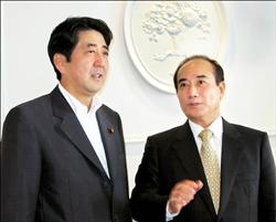 王金平(右)十六日應(yīng)邀在日本演講,在演講會前與安倍晉三(左)會晤