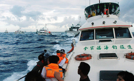 馬英九當局的強硬態(tài)度,讓保釣人士格外興奮。黃錫麟等人再次出海保釣,也沒有遭遇任何阻攔。臺灣保釣行動聯(lián)盟12名成員及30名隨行記者,登上“全家福”號海釣船,前往釣魚島宣示“主權”。一路上還有臺灣“海巡署”的軍艦保護。