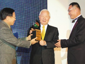 頒獎(jiǎng)典禮上,兩岸企業(yè)家云集。臺(tái)灣知名人士王建煊目前在浙江平湖辦新華愛心學(xué)校,資助清寒學(xué)生,昨天也特別驅(qū)車一個(gè)半小時(shí),從平湖趕赴上海參加盛會(huì)。