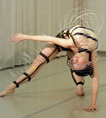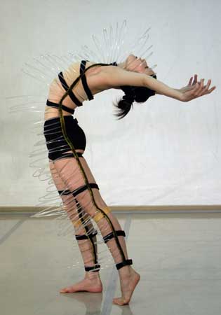 云門舞集2“2008春斗鳥(niǎo)之歌”三月二十六日起將在新舞臺(tái)一連演出五場(chǎng),這是云門火災(zāi)后第一檔公演。圖為二月二十五日云門舞者表演編舞家黃翊新創(chuàng)作的“身·音”。(“中央社”圖;張皓安攝)