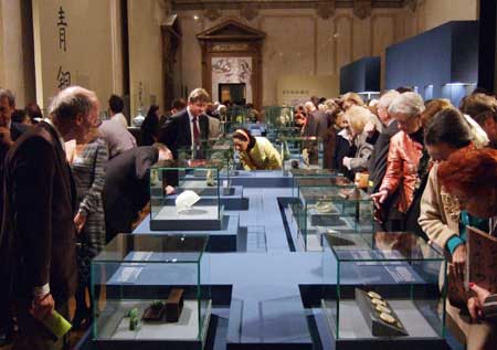 開幕典禮結(jié)束后,數(shù)百名來(lái)賓即涌進(jìn)展覽大廳,一睹故宮文物的風(fēng)采。