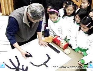 蓋上落款,輕松完成“鼠來寶”字帖,劉校長手中的抹布彷佛就像是化身毛筆一般,一筆一劃勾勒出漢字的力與美。一旁的小朋友看得目不轉(zhuǎn)睛,搶著上場親自實驗一番。
