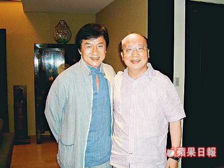成龍到臺(tái)中探視老友、臺(tái)中市長胡志強(qiáng)。(圖:臺(tái)灣《蘋果日?qǐng)?bào)》)