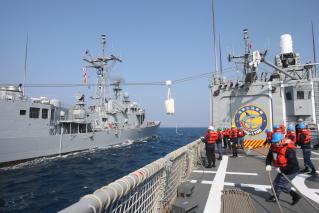 在海上整補科目時,納編的班超軍艦?zāi)M回報機件故障,支隊下令由岳飛軍艦緊急支持料件,兩艘軍艦在等速并航中,實施高線傳遞演練。