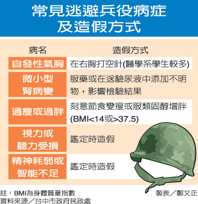 一位曾參與役男體檢的醫(yī)師說,體檢過程很嚴格,就算檢查出蛋白尿也不能確定免役,醫(yī)師會要求役男當場解尿復驗,接著還要抽血檢驗,如果還有問題,最后還得以直徑0.1公分的針頭穿刺腎臟,取得切片組織,在電子顯微鏡下確認腎病變,才能取得免役資格;不少“假仙”的役男一聽到要切片,打退堂鼓的居多。