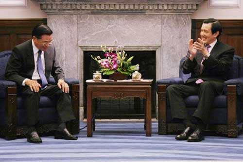 中新網(wǎng)6月9日電 據(jù)臺灣“中央社”報道,;鶗麻L江丙坤將率團前往北京,展開中斷十年的兩岸兩會協(xié)商,馬英九九日接見了江丙坤一行。