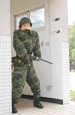 軍方說,假衛(wèi)兵的用意是欺敵,實(shí)際的兵力、火力都隱藏在營(yíng)區(qū)內(nèi),萬(wàn)一有人硬闖或企圖潛入時(shí),營(yíng)區(qū)警衛(wèi)連會(huì)立即指揮調(diào)派兵力,三分鐘內(nèi)即可趕抵側(cè)門。
