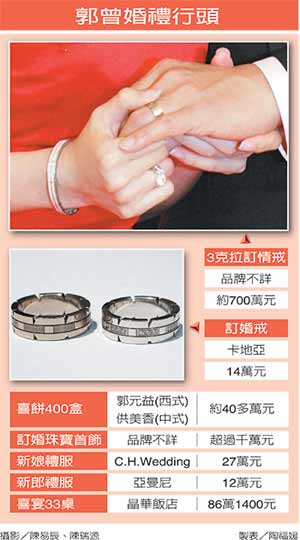 郭臺銘?yīng)氉庸卣龘斡喕檠缗c結(jié)婚宴總指揮,幫老爸打理婚宴,郭臺銘女兒郭曉玲目前人在境外,會趕回臺灣參加老爸26的婚宴。27日也會舉行自助式派對,邀請女方親友和娛樂圈朋友參加。