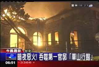 資料圖片:“草山行館”的熊熊大火