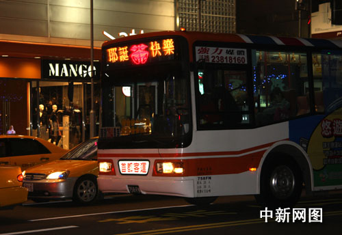 平安夜,臺北市的公交車向您說圣誕快樂。作 者:陳立宇