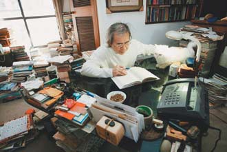 南方朔家里像座小型圖書館,書房里一排排頂天立地的書架,像學(xué)問家的神圣祭壇,不可造次;但家犬“狗狗”除外。它舒服地把窩放在書林間,同享安穩(wěn)。狗窩與書房并不互斥。
