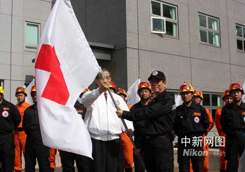 搜救隊(duì)今天上午八點(diǎn)三十分由市長(zhǎng)郝龍斌及臺(tái)灣紅十字組織會(huì)長(zhǎng)陳長(zhǎng)文授旗,下午啟程。至于搜救隊(duì)將至哪一個(gè)地方救援,要等到了成都后,由當(dāng)?shù)氐木仍鞴軉挝环峙,搜救?duì)準(zhǔn)備約七天份的干糧及飲水。