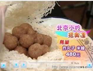 北京老字號中華美食首度引進臺灣,除了招牌菊花燒賣,業(yè)者也搭上奧運順風車推出一系列奧運美食,像奧運場館鳥巢,外觀用米線編織,里頭則放入炸丸子,外酥內(nèi)軟風味獨特;水立方也是超逼真,外頭用豬肉凍制造透明感,里頭則包裹鴨肝;另外,還有形似奧運標志五環(huán)圖,同樣采用菊花形狀,五種顏色搭配,要甜要咸任君挑選,但為了色香味兼具,業(yè)者也曾傷透腦筋。