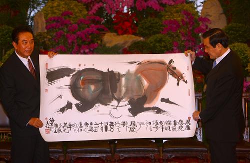 陳云林贈(zèng)送給馬英九的是大陸著名畫家韓美林的一幅駿馬畫作。
