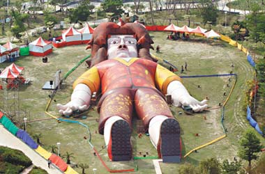 中新網(wǎng)4月2日電 據(jù)臺灣聯(lián)合報報道,臺中市兒童藝術(shù)節(jié)今晚登場,一劇團在公園打造長近60米的“格列佛人體藝術(shù)探索館”,市民站在巨大的“格列佛”身旁,頓時變成“小人”,好像進入童話故事情境,從格列佛的腳底進入,能認識人體器官。