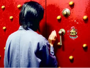 要開紅門,“故宮”人員至少三人同行,即使貴為院長都沒有鑰匙,也無法單獨擅入,鑰匙平時鎖在行政大樓地下的器物處辦公室,由科長保管,凡進(jìn)出山洞,都必須向科長報備批準(zhǔn),并先行知會安全室!耙欢ㄒ獌扇艘陨吓阃,絕不可能單獨入內(nèi)!薄肮蕦m”院長林曼麗說。