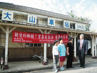 據(jù)臺灣《聯(lián)合報》報道,網(wǎng)絡(luò)上最近流傳一張標(biāo)題為“吼!我想要買火車票,但是不敢買!”的照片,因背景是古色古香的苗栗后龍鎮(zhèn)大山火車站,站前掛“親愛的鄉(xiāng)親,買票是犯法,賣票也有罪”的反賄選布條。