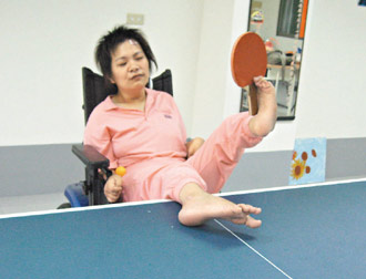中新網(wǎng)12月25日電 臺(tái)灣女子黃美秀盡管罹患腦性麻痹,卻頑強(qiáng)地克服障礙,靠著靈活的“黃金左腳”學(xué)電腦、打乒乓球。她的名言是:“勇敢走出去,不要把自己當(dāng)成不敢見人的魔鬼!
