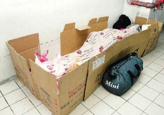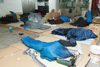 中新網(wǎng)2月15日電 寒流連日來襲,臺(tái)北市一度掉到攝氏六七度,使得大批游民涌入臺(tái)北火車站避寒。原本約僅數(shù)十名游民“駐地”的臺(tái)北火車站,這幾天一下子爆增到兩百多人。不少游民用厚紙板搭成簡陋帳篷御寒,雜物散置一地,使得臺(tái)北火車站一些角落仿佛“難民營”。