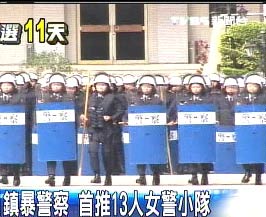 中新網(wǎng)3月11日電 臺(tái)灣地區(qū)領(lǐng)導(dǎo)人選舉只剩倒數(shù)11天。為防止任何民眾太過(guò)激情而發(fā)生意外,臺(tái)灣警政部門(mén)特地展示520人組成的鎮(zhèn)暴警隊(duì),首次加入一支女性組成的小隊(duì)。