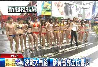 臺(tái)選秀節(jié)目挑戰(zhàn)尺度 選手穿比基尼馬路走秀(圖)