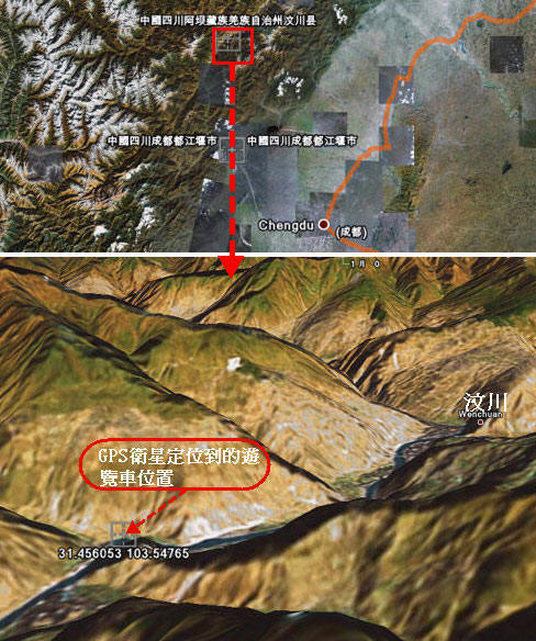 中新網(wǎng)5月16日電 四川地震后,臺灣彰化祥鶴旅行社一行14人行蹤成謎。據(jù)臺灣《聯(lián)合晚報》報道,透過團員搭乘的游覽車上的GPS定位系統(tǒng),確定了游覽車的經(jīng)緯度,在汶川鐵礦附近。目前人在四川的旅行社總經(jīng)理陳文義已將定位的位置交給當?shù)氐木葹闹笓]中心,希望能夠優(yōu)先搶救,盡速把年事已高的團員們找到。
