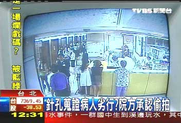 據(jù)臺灣TVBS電視臺報(bào)道,這個(gè)醫(yī)院堅(jiān)稱是消防灑水系統(tǒng)的噴口竟然是監(jiān)視錄像機(jī),臺北市議員接獲投訴,醫(yī)院裝針孔偷拍病人,火氣很大。臺北市議員莊瑞雄說,“你們到底要看什么?因?yàn)槟且婚g不是保護(hù)病房呀,除了保護(hù)病房,是不能裝這個(gè)(監(jiān)視器)的呀,醫(yī)學(xué)院應(yīng)該都有念到呀。”